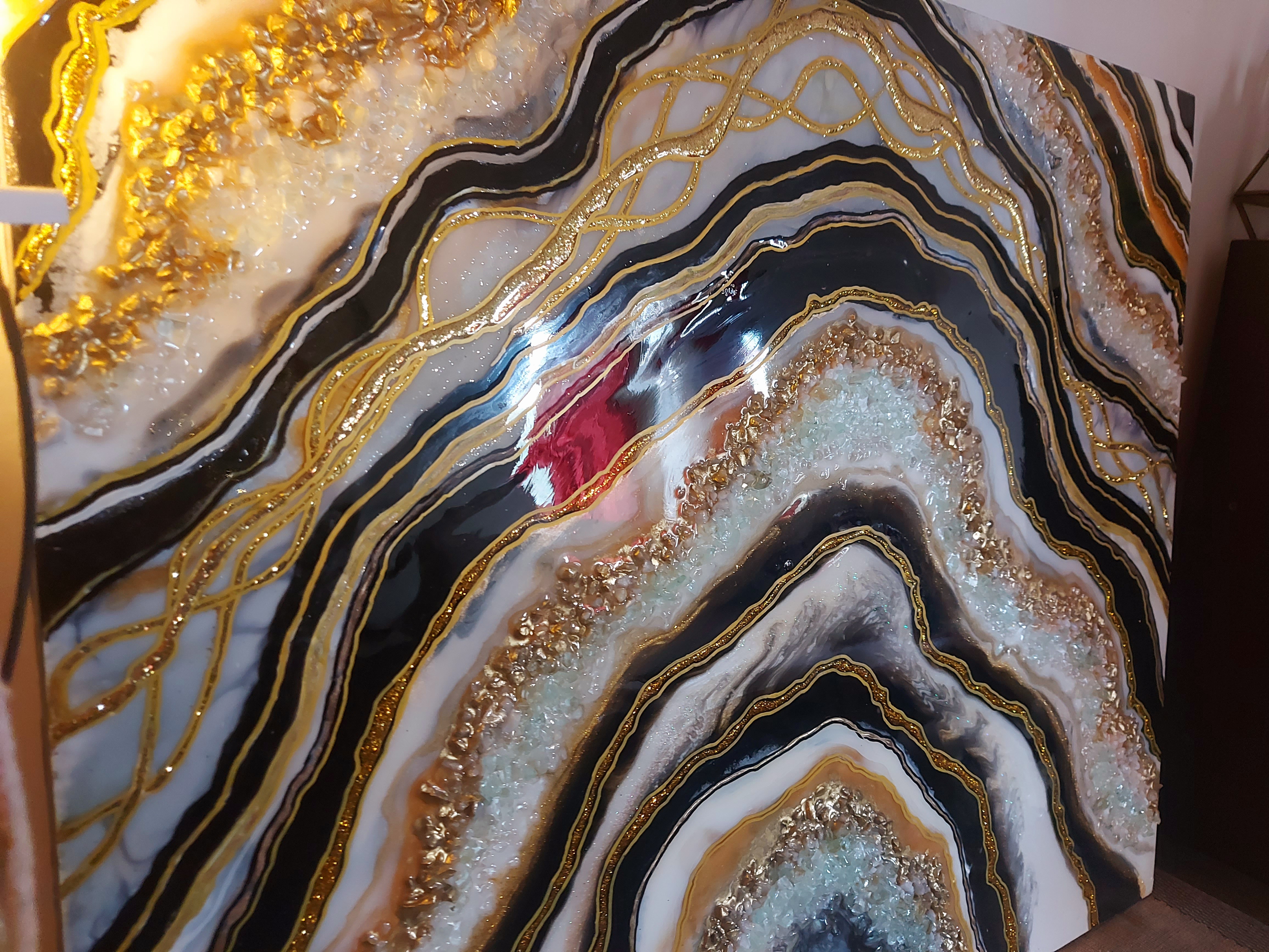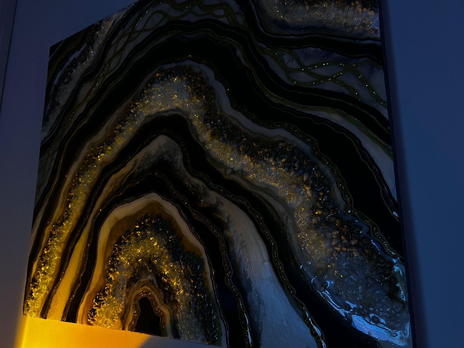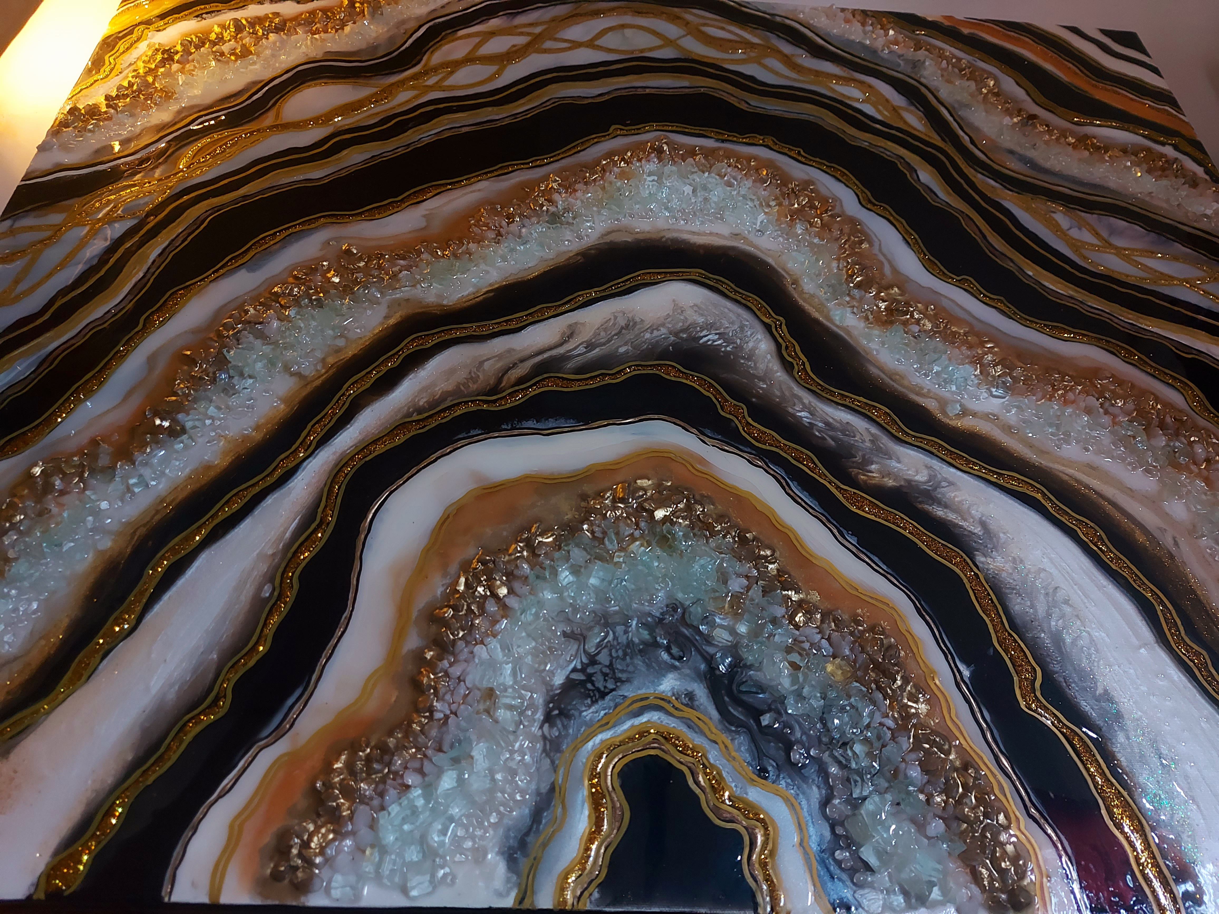 I STRONGLY RECOMMEND a warm spot light that will highlight all those beautiful glitters and crystals even in the day time. I personally lit some candles in from of my Geodes for that ZEN Ambience.