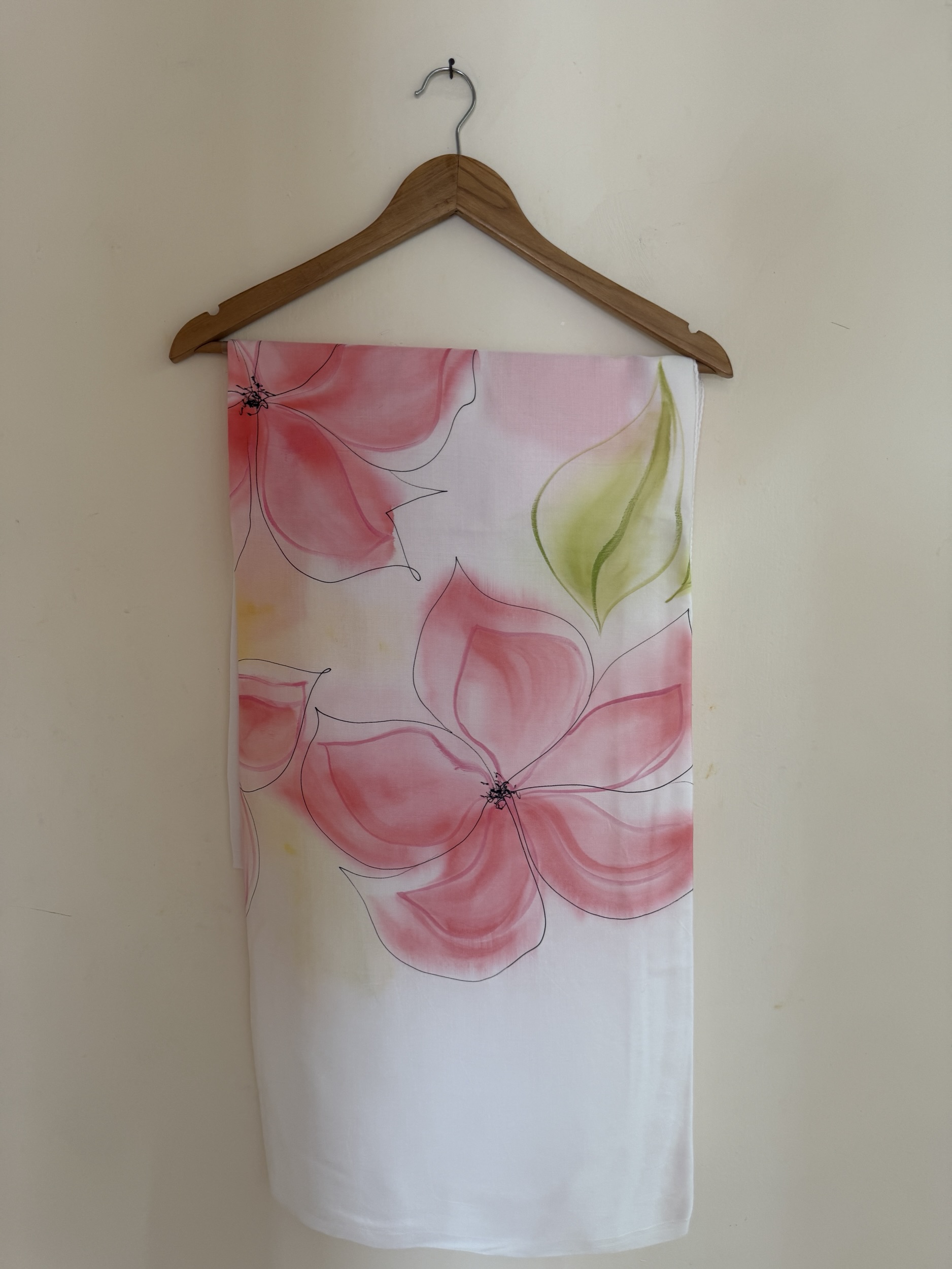 Hand painted Silk Scarf- Japanese silk pink flowers