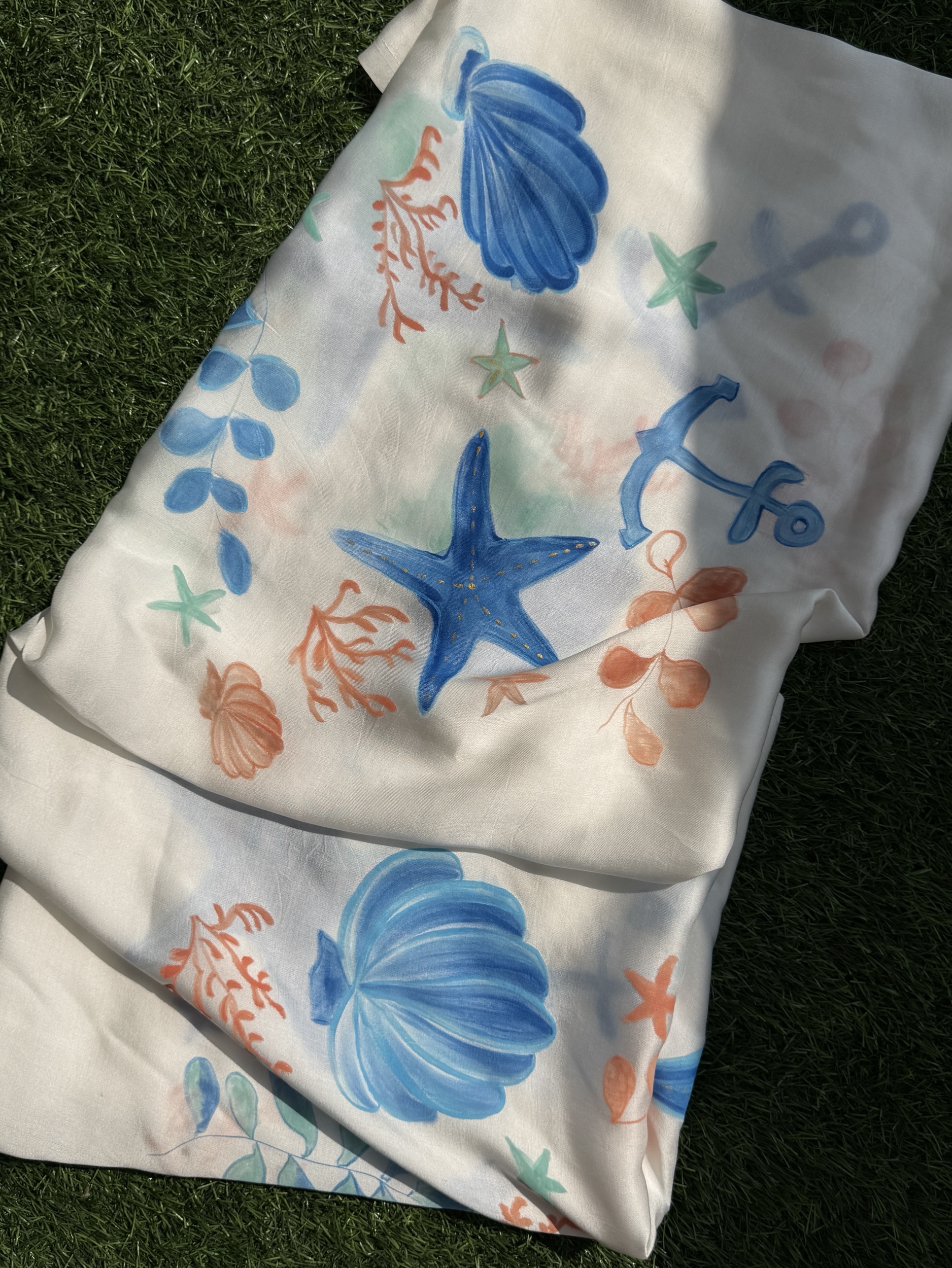 Hand painted silk scarf crafted on premium Japanese Habotai silk, known for its extremely soft, smooth and lightweight feel. Designed for elegant everyday styling, it adds a refined artistic touch to both office and casual wear.