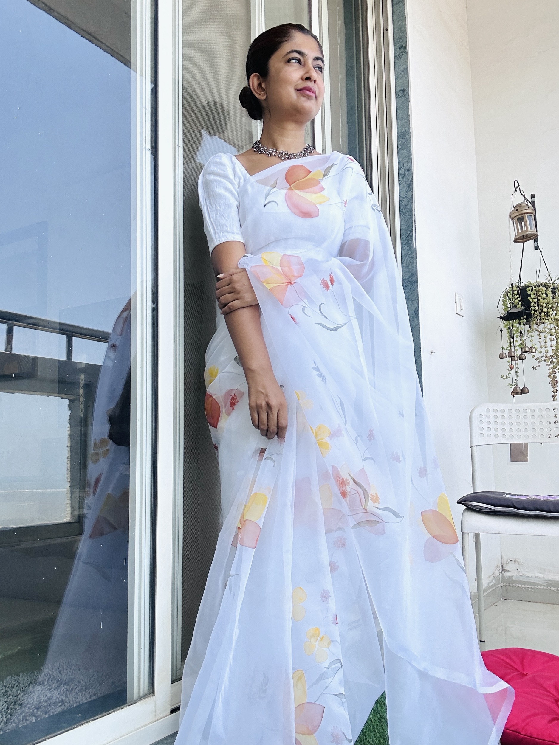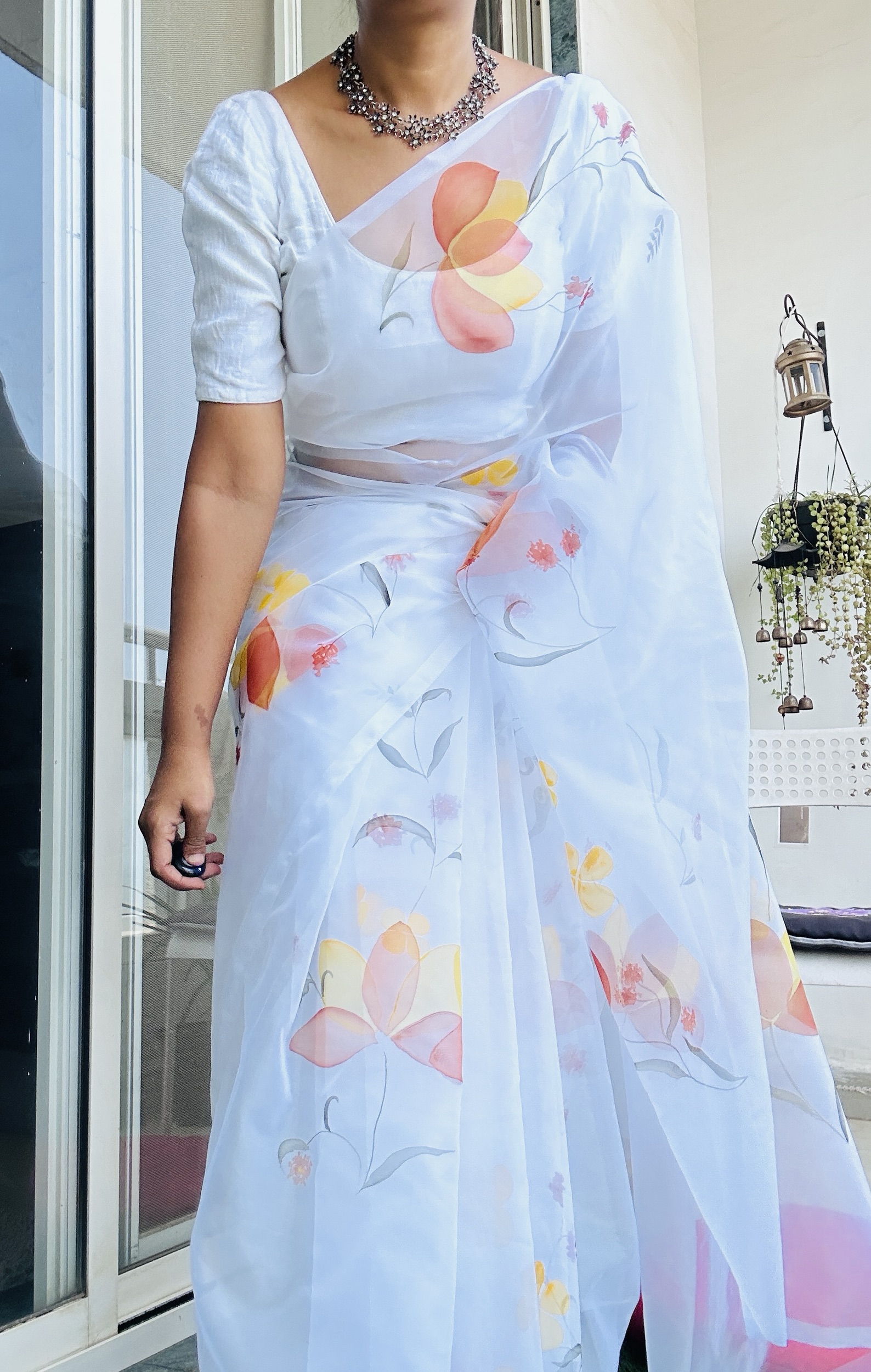 Organza Saree Handpainted Intricate Flowers