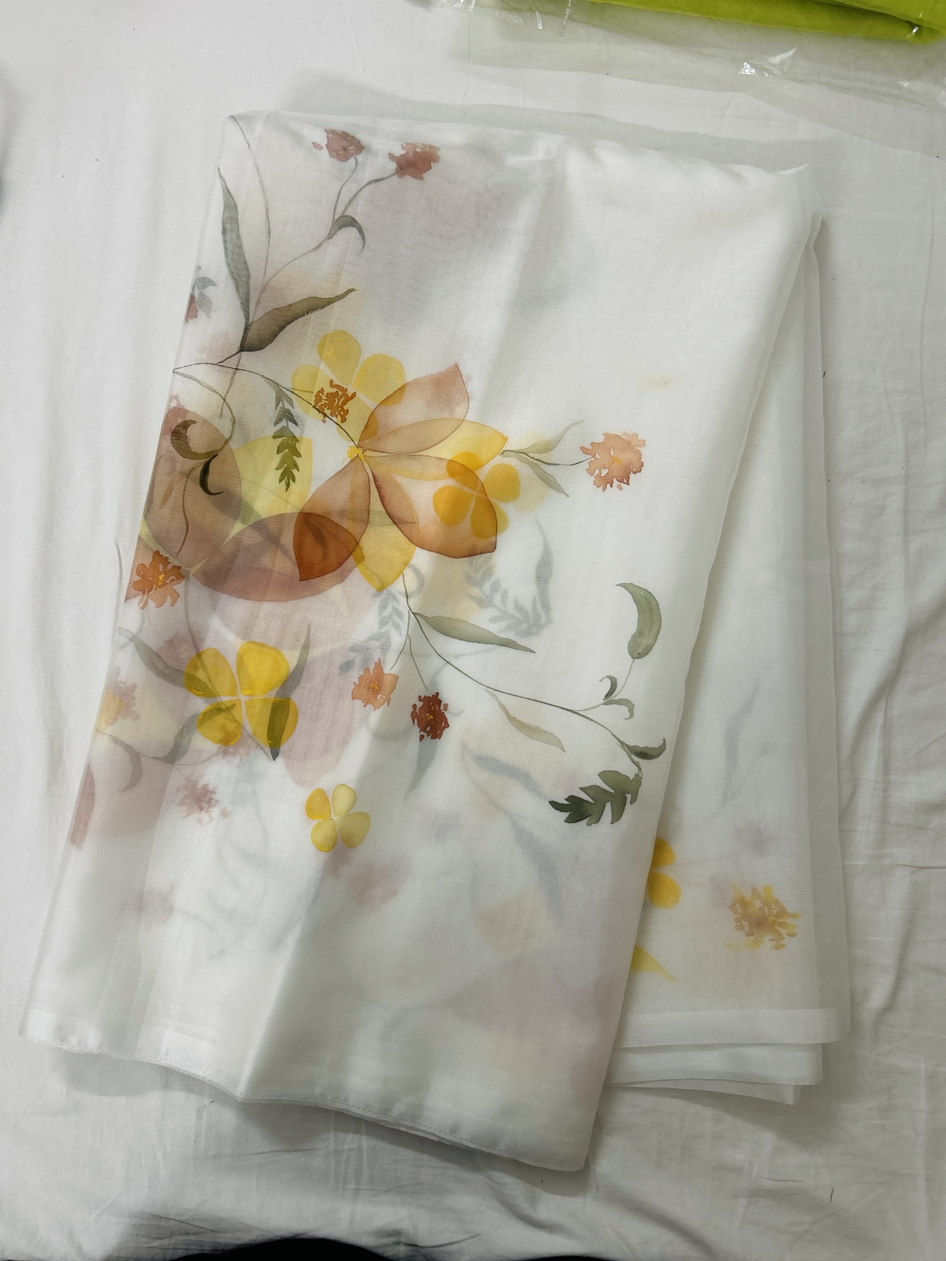 Organza Saree Handpainted sunflowers yellow