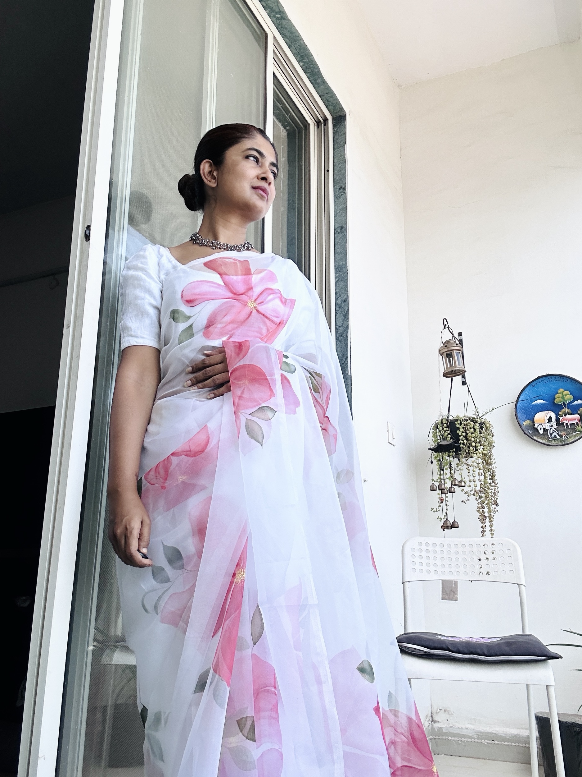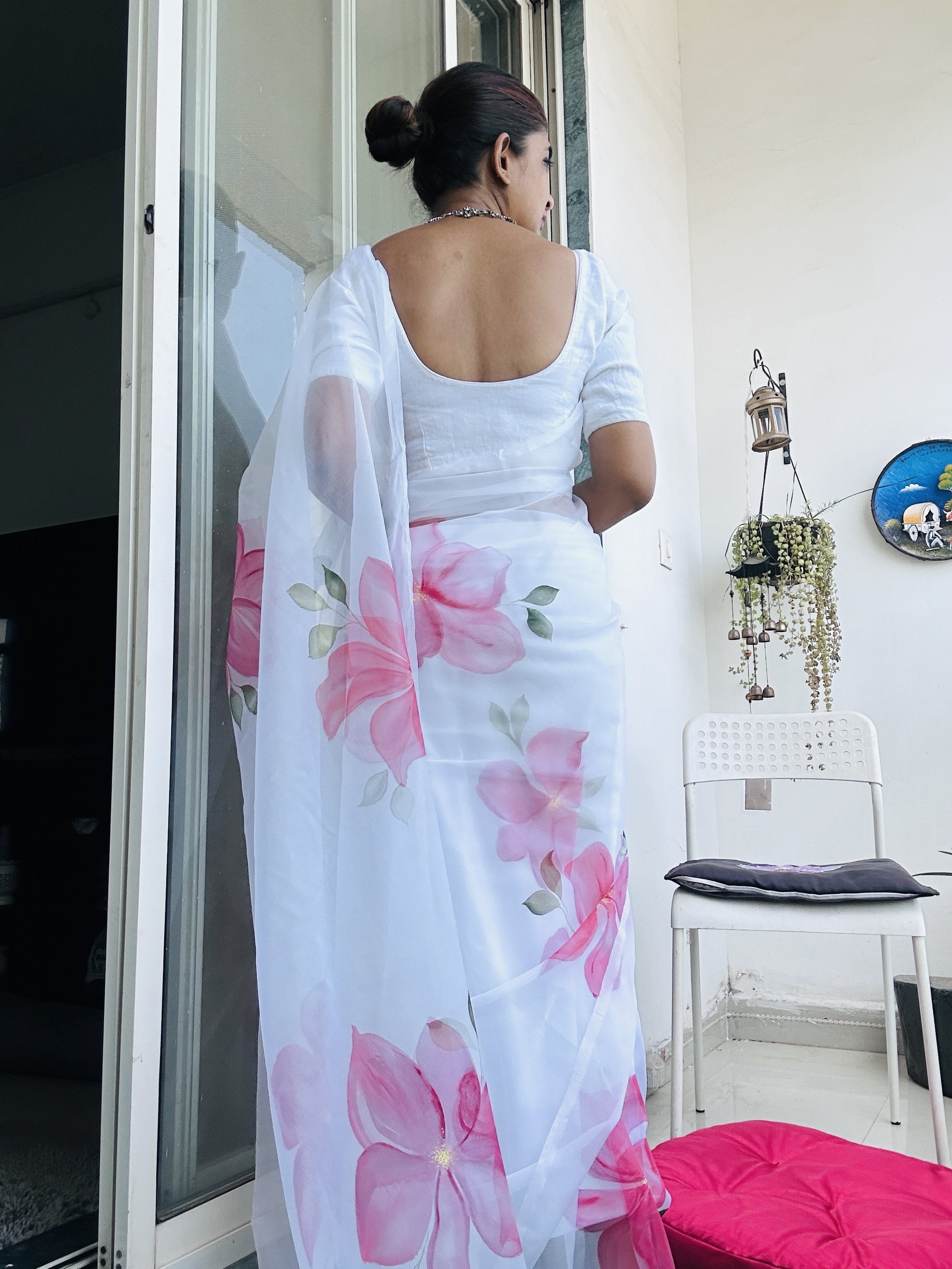 Organza Saree Handpainted Water Flowers