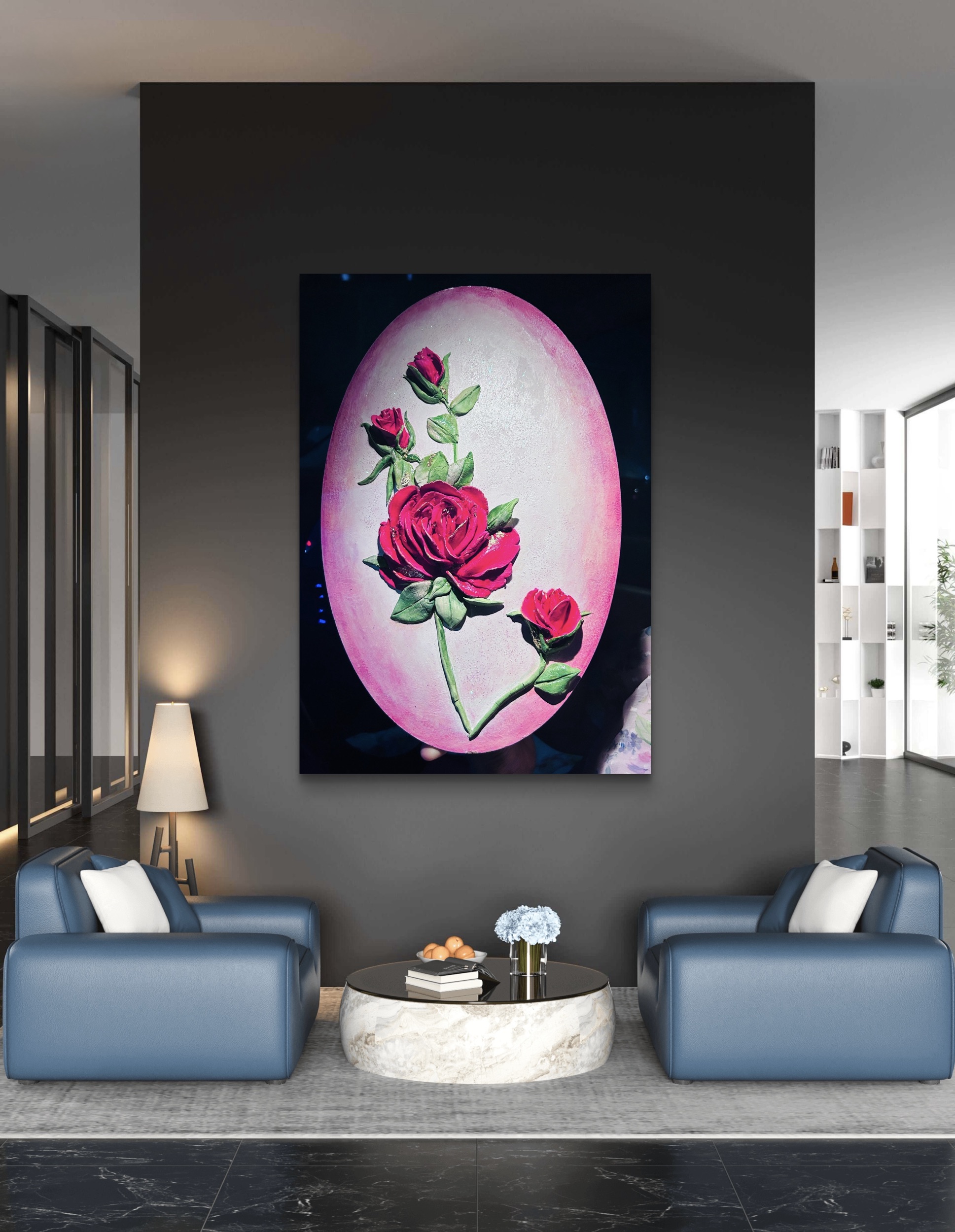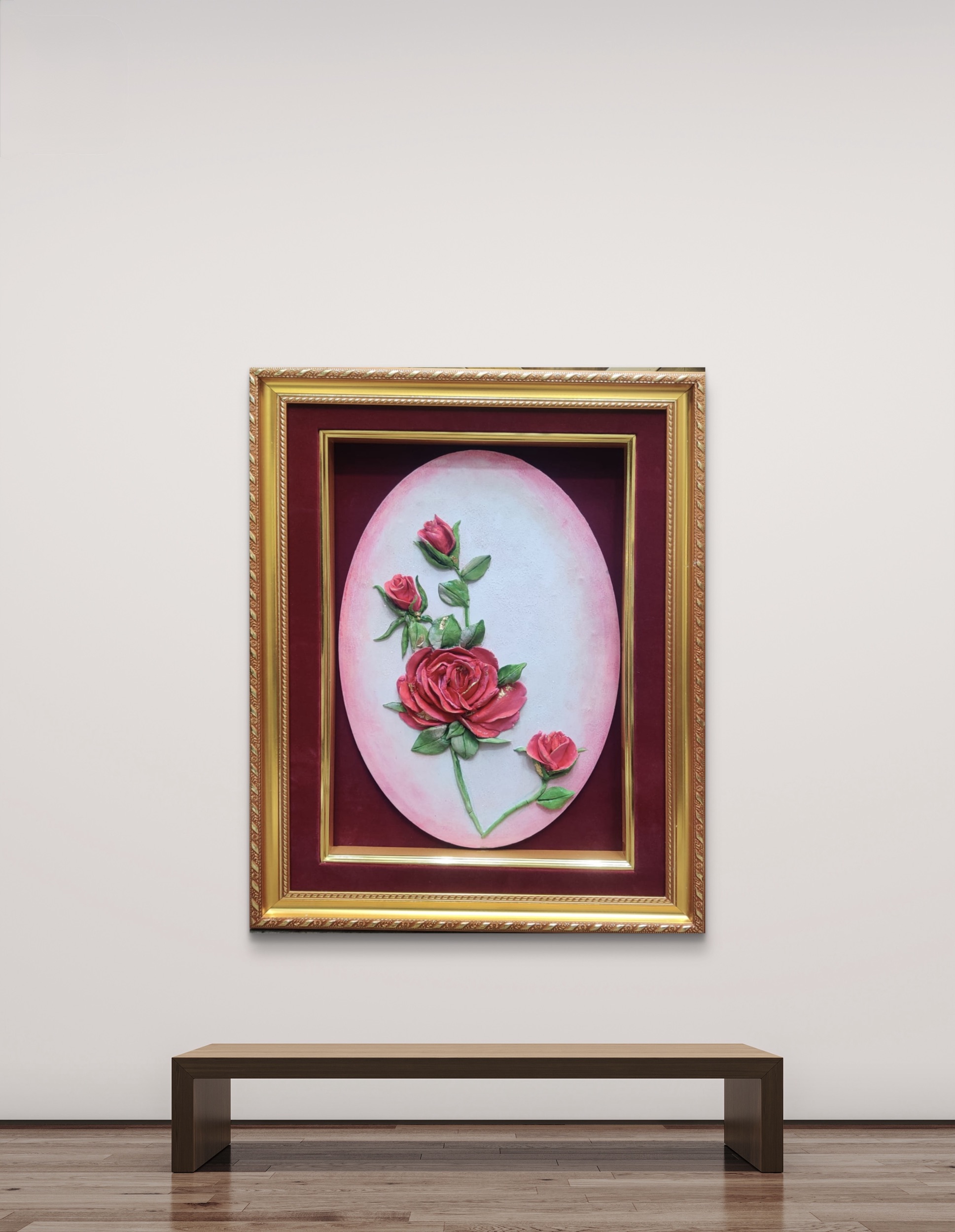 Original Hand carved sculpture painting.Painted with shades of rose, white and gold. Best viewed from 1 or 2 meters.