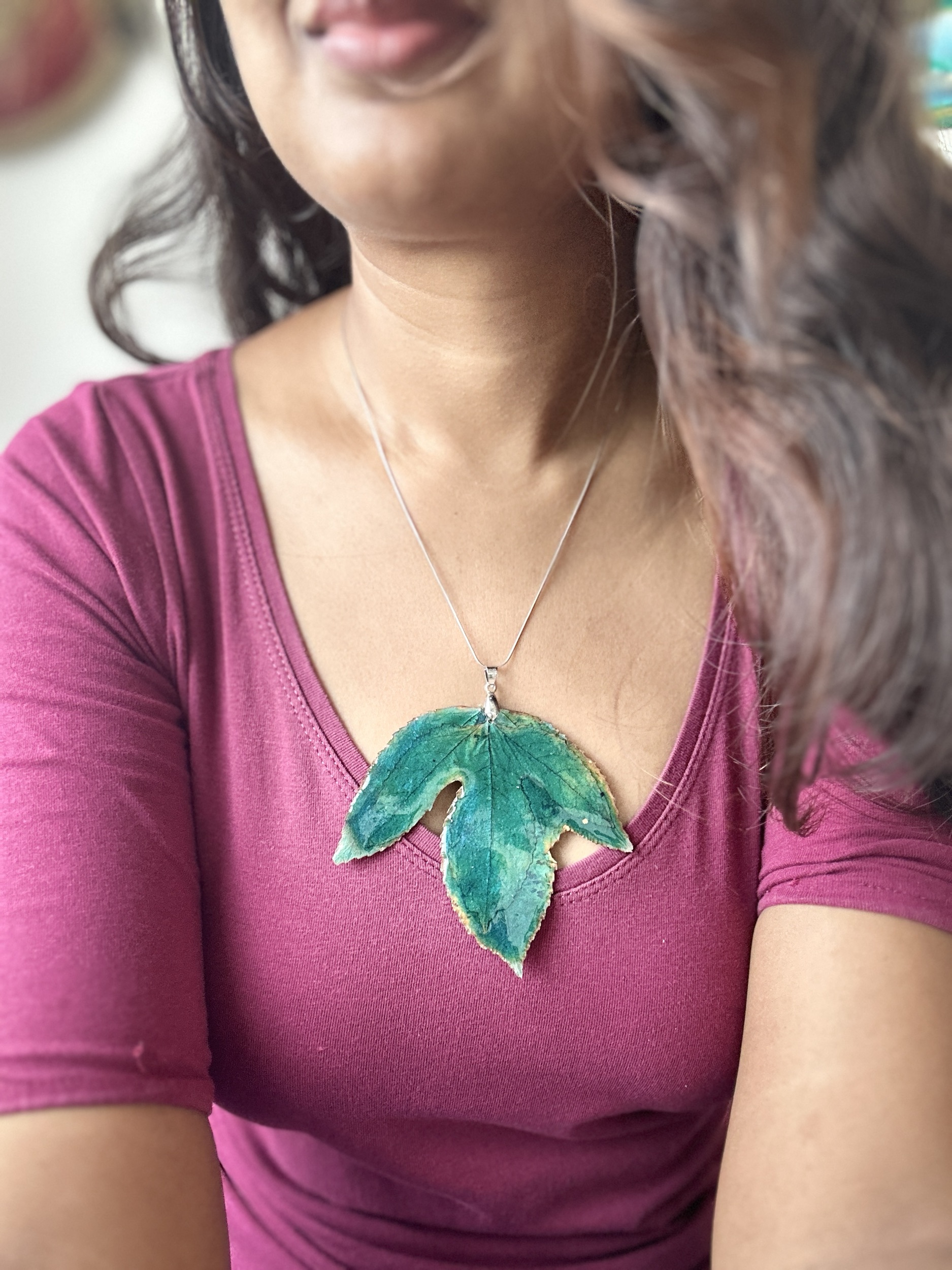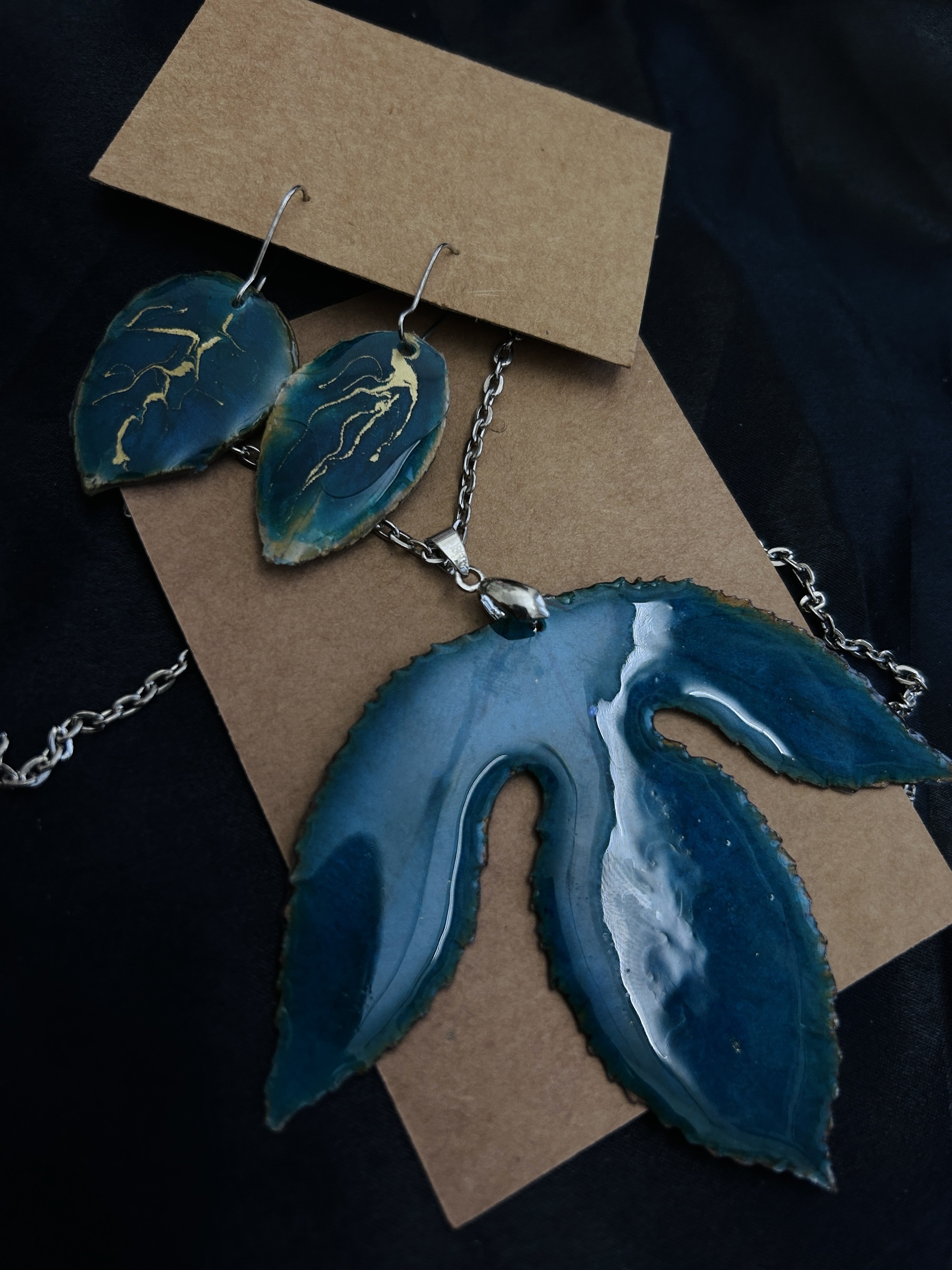 Resin Earrings, pendant set handmade with Passion flower leaf