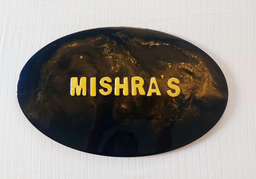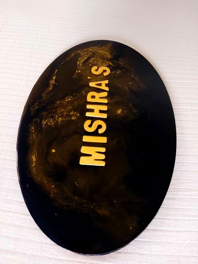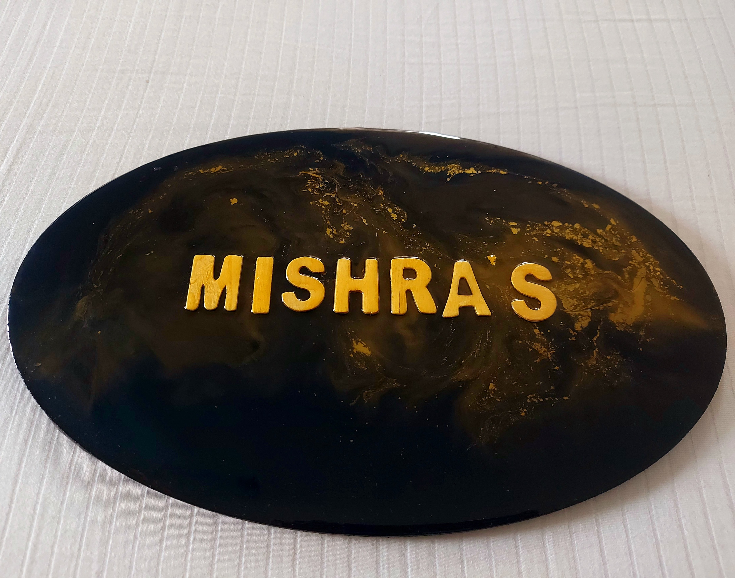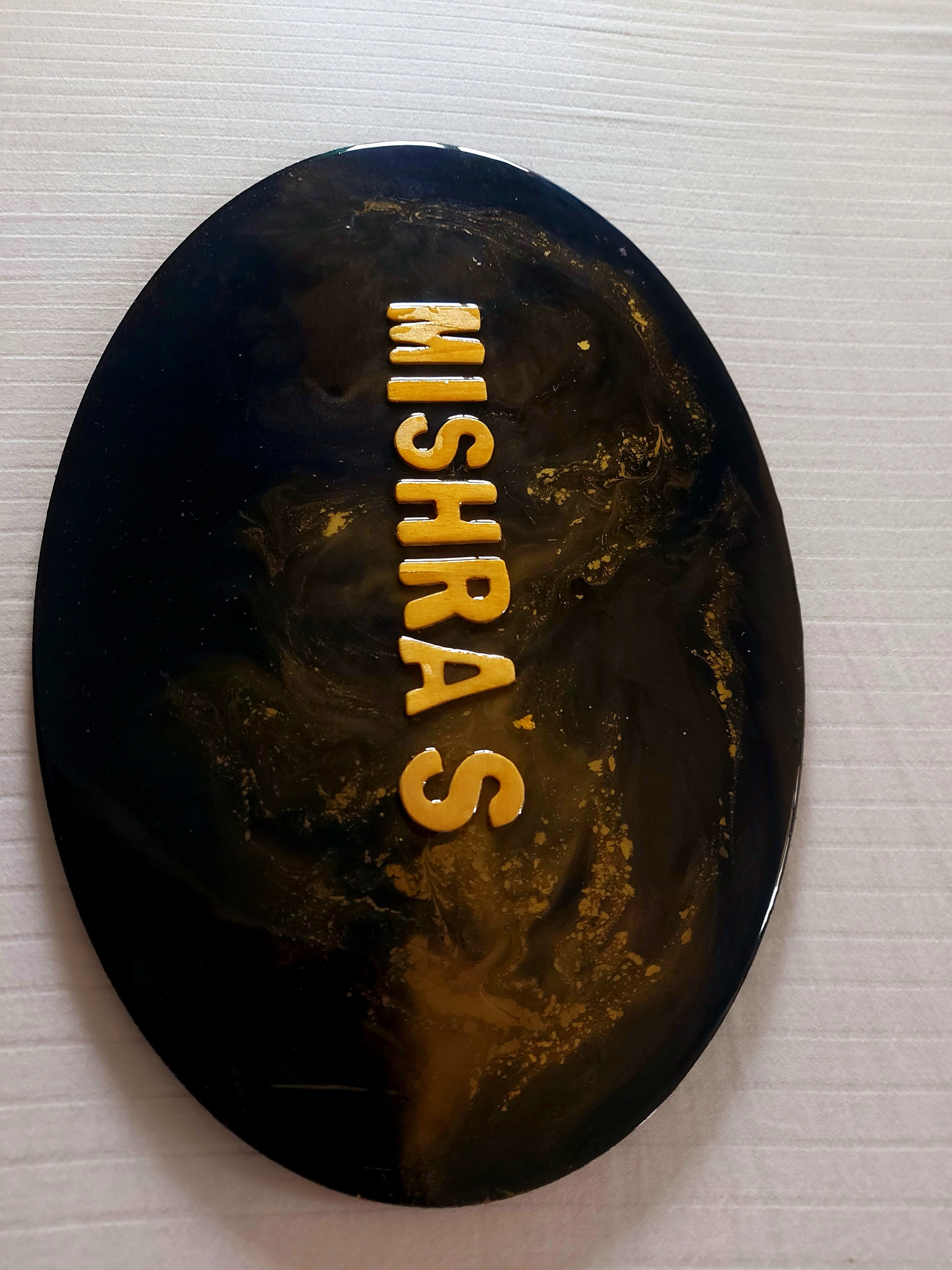 Customize your own nameplate made with resin. Made on Navy blue base, on surface gold abstract work.