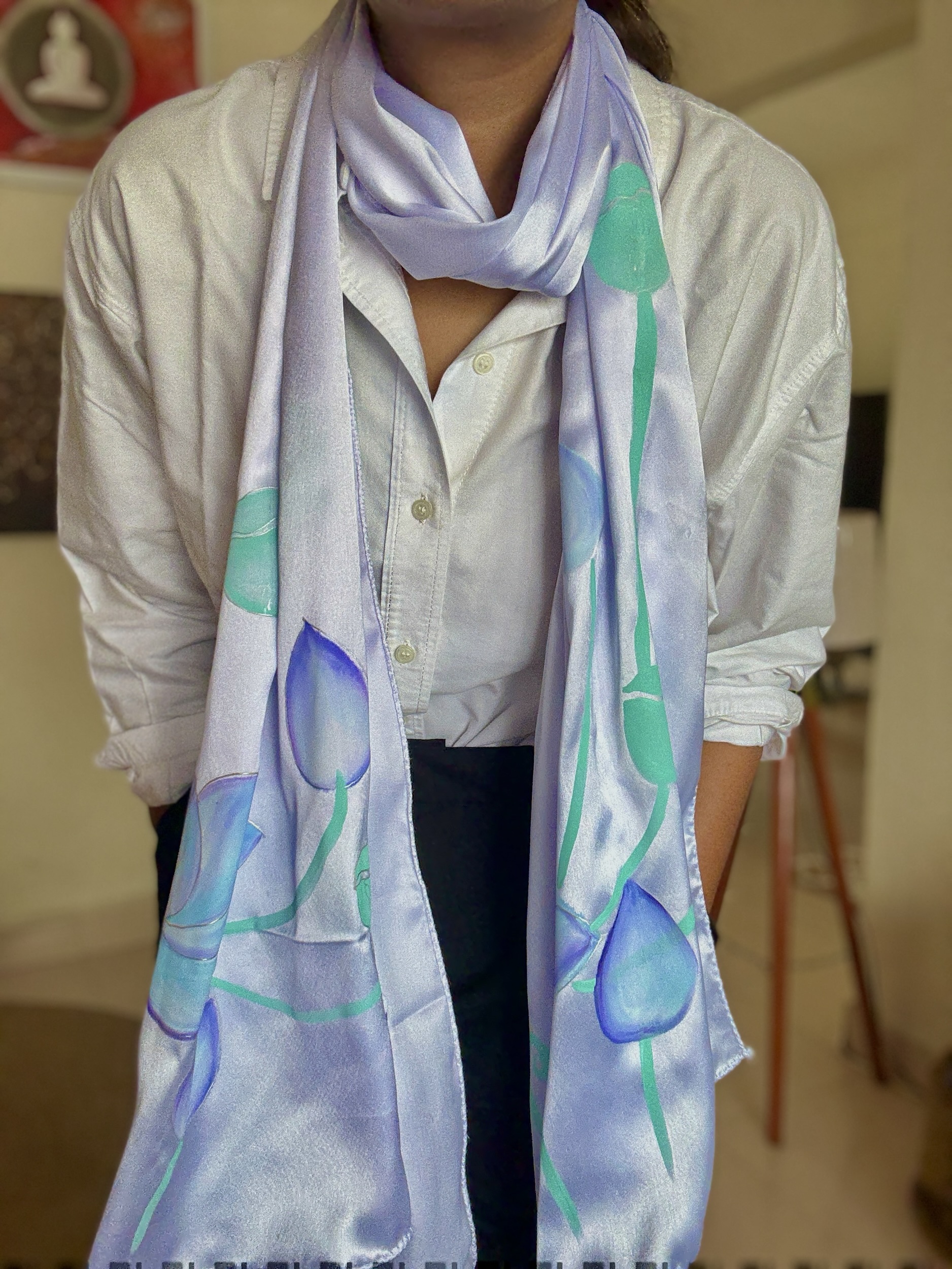 Hand painted silk scarf Pichwai Lotus