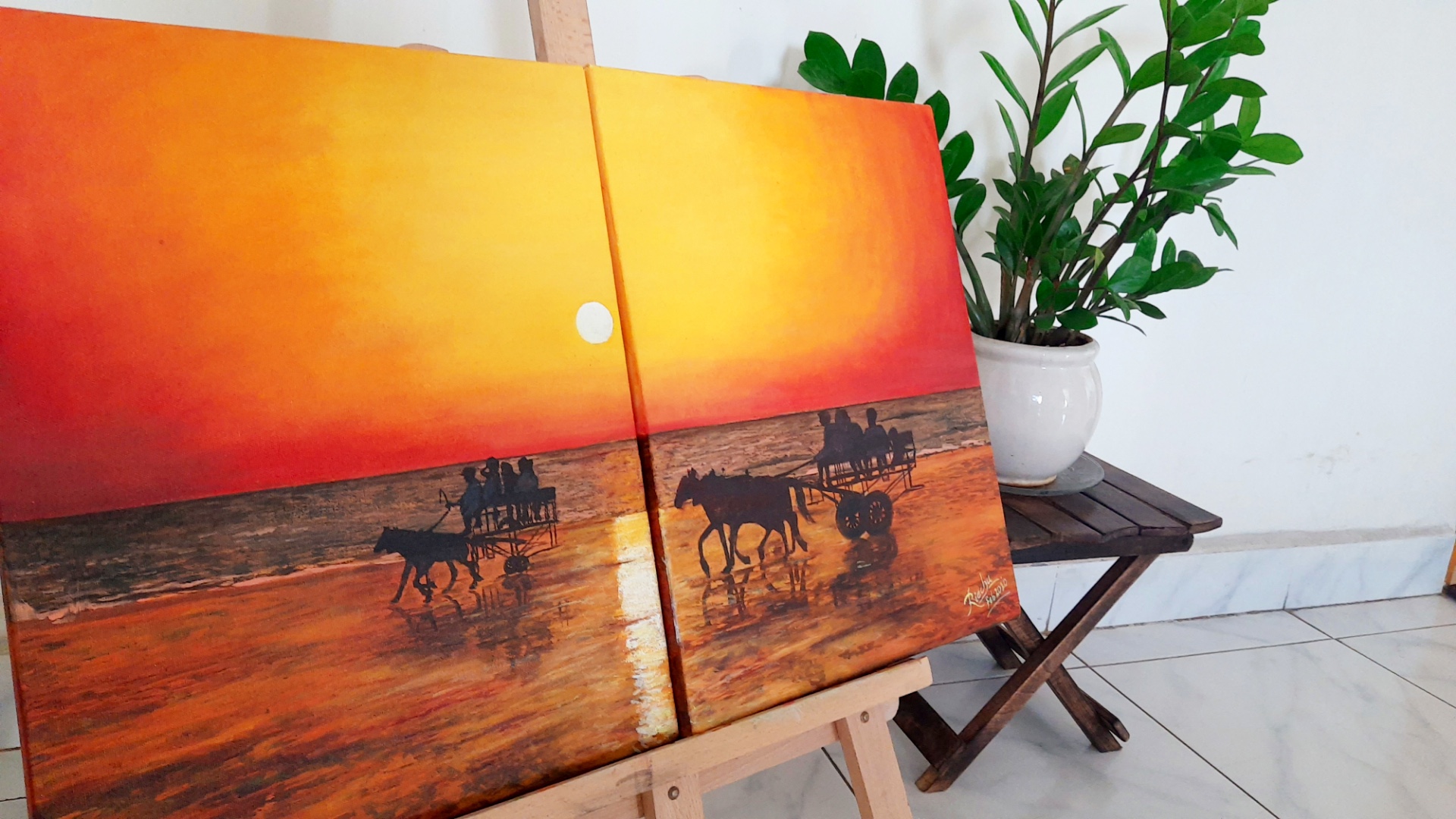 Original Diptych Oil Painting – Two connected canvases painted by hand.