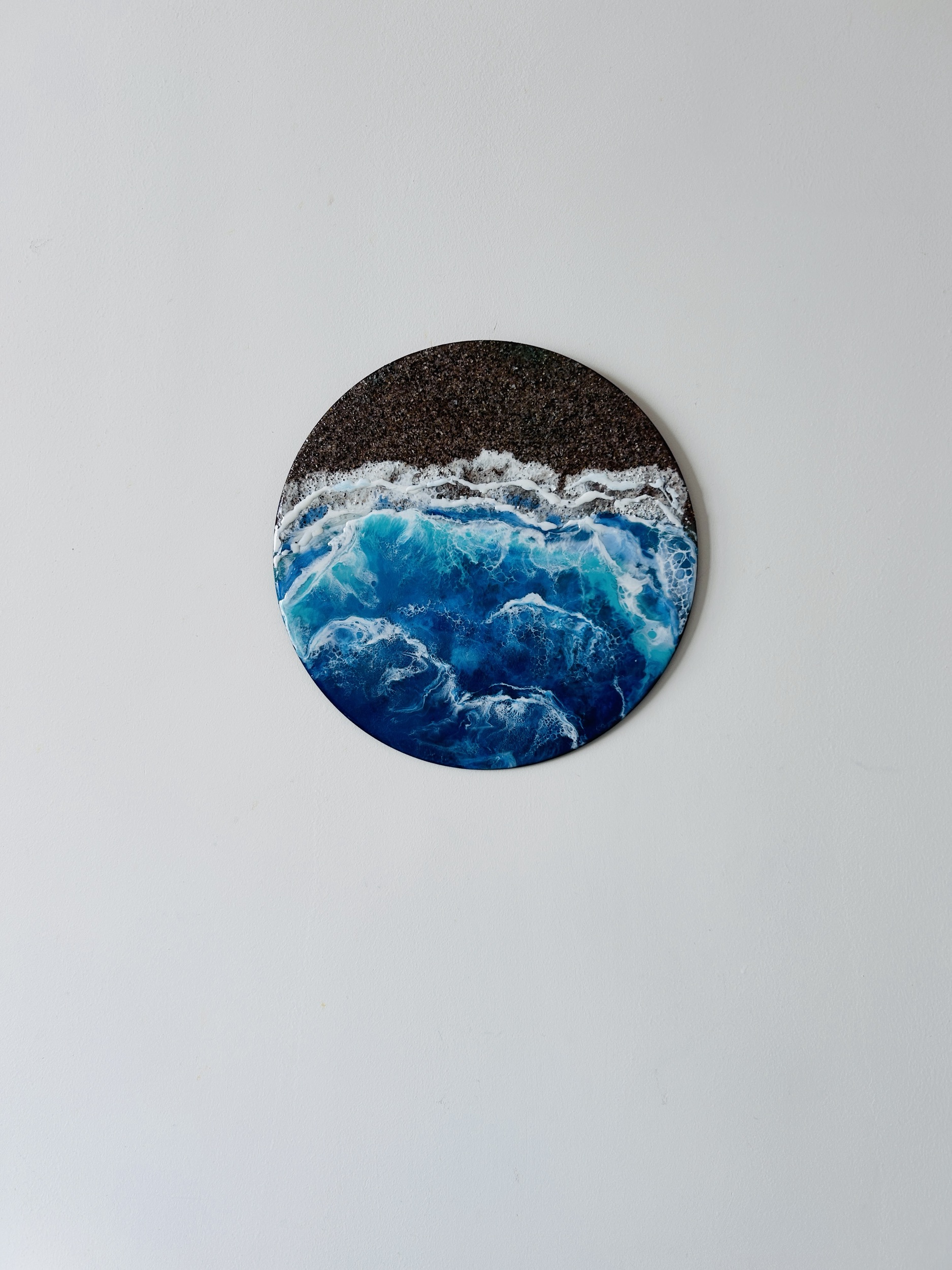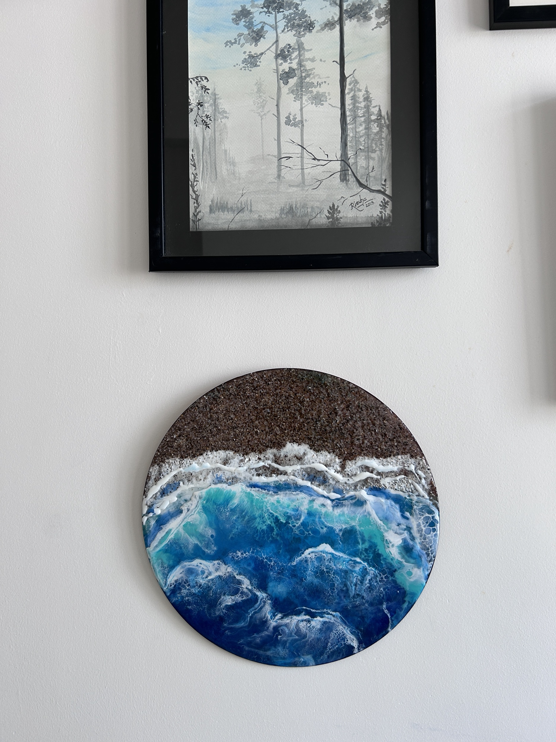 A beautiful wall, art or interiors of your home.made with reason on a wooden base. It can be hung on the walls. It gives that extra 3-D look from which ever and will you look at it.